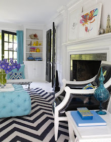 Although I am always a fan of going for unique when it comes to interior design, there are some trends that suck me in so deep I simply can't get enough. Suzani, lacquer and sunburst mirrors are just a few, but the pattern that I think I will be forever head over heels for is chevron. Thick, thin, black and white or neon yellow, I am completely smitten and can't wait until I have a chevron floor one day. The BEST part of this pattern is that not only does it look fab on walls, ceilings, drapes, chairs, doors and pillows, but you can smack it on a wedding cake, shower invitation or any item of clothing. Sign me up! And p.s. can we please just talk for a second about the cookies image at the very bottom?! I think a chevron party is in major order....rsvp asap and I'll get planning!